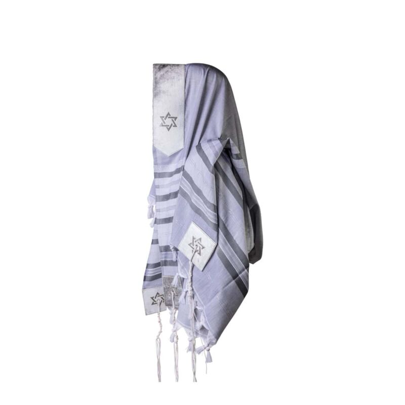טלית צמר מהודרת דגם מגן דוד – אפור
