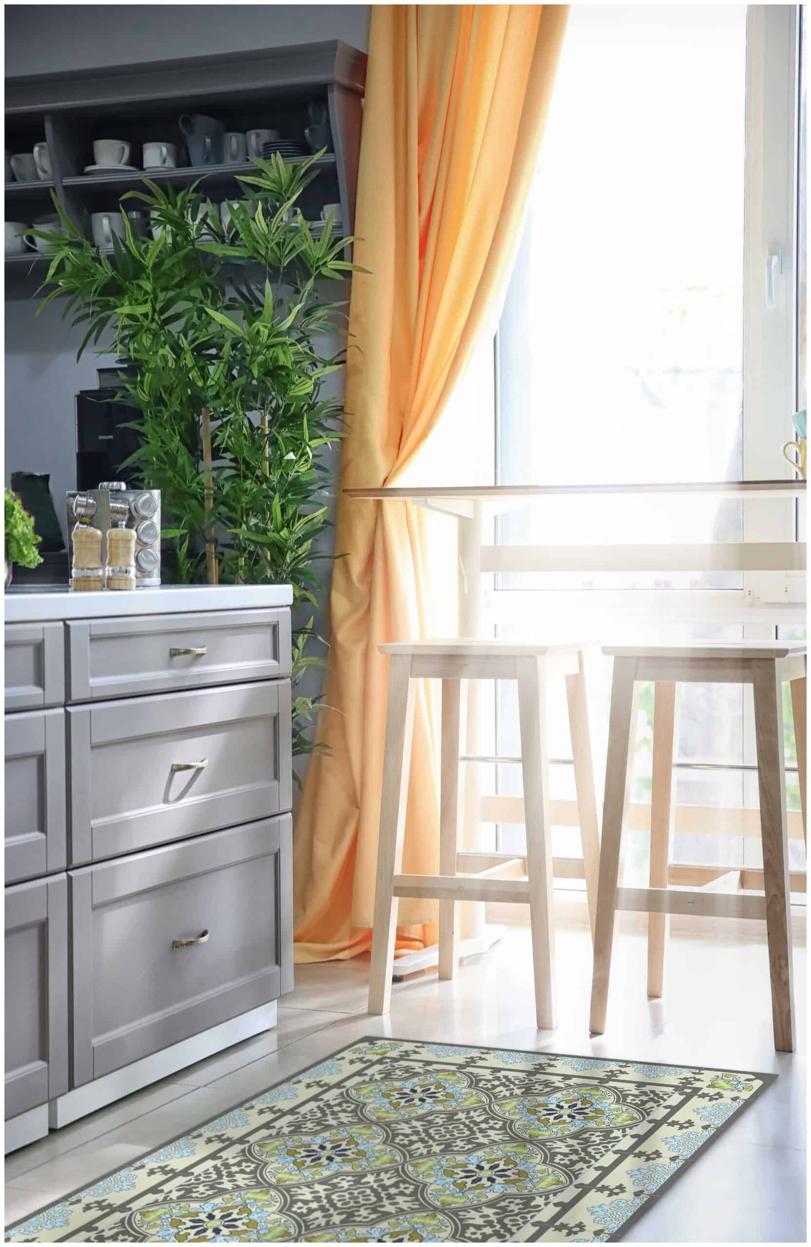 שטיח יפה, מוסיף צבע וגוון למטבח, קל לניקוי ושימוש ופרקטי.