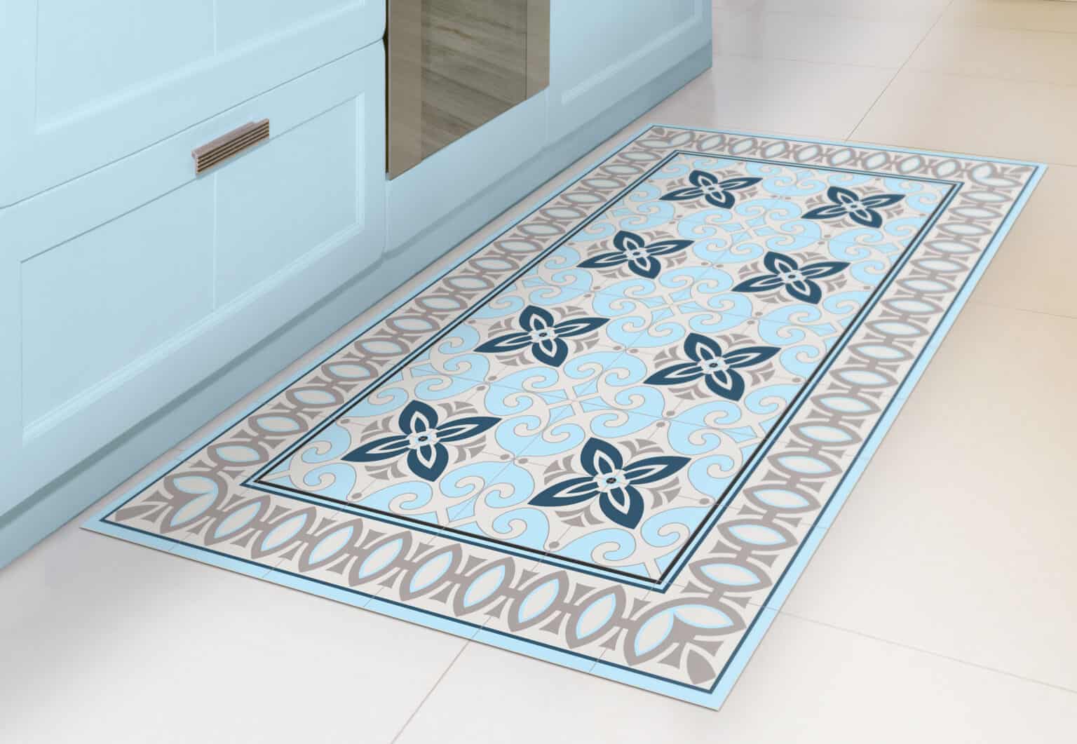 שטיח PVC לסלון ולבית בגדלים שונים דגם תכלת אפור