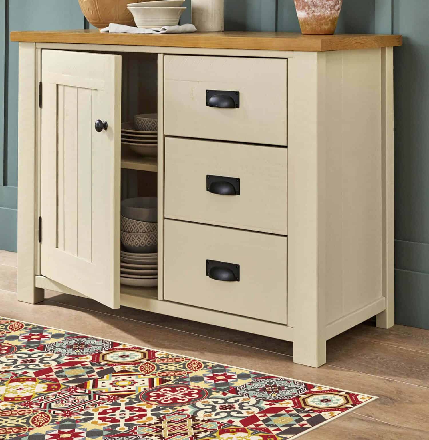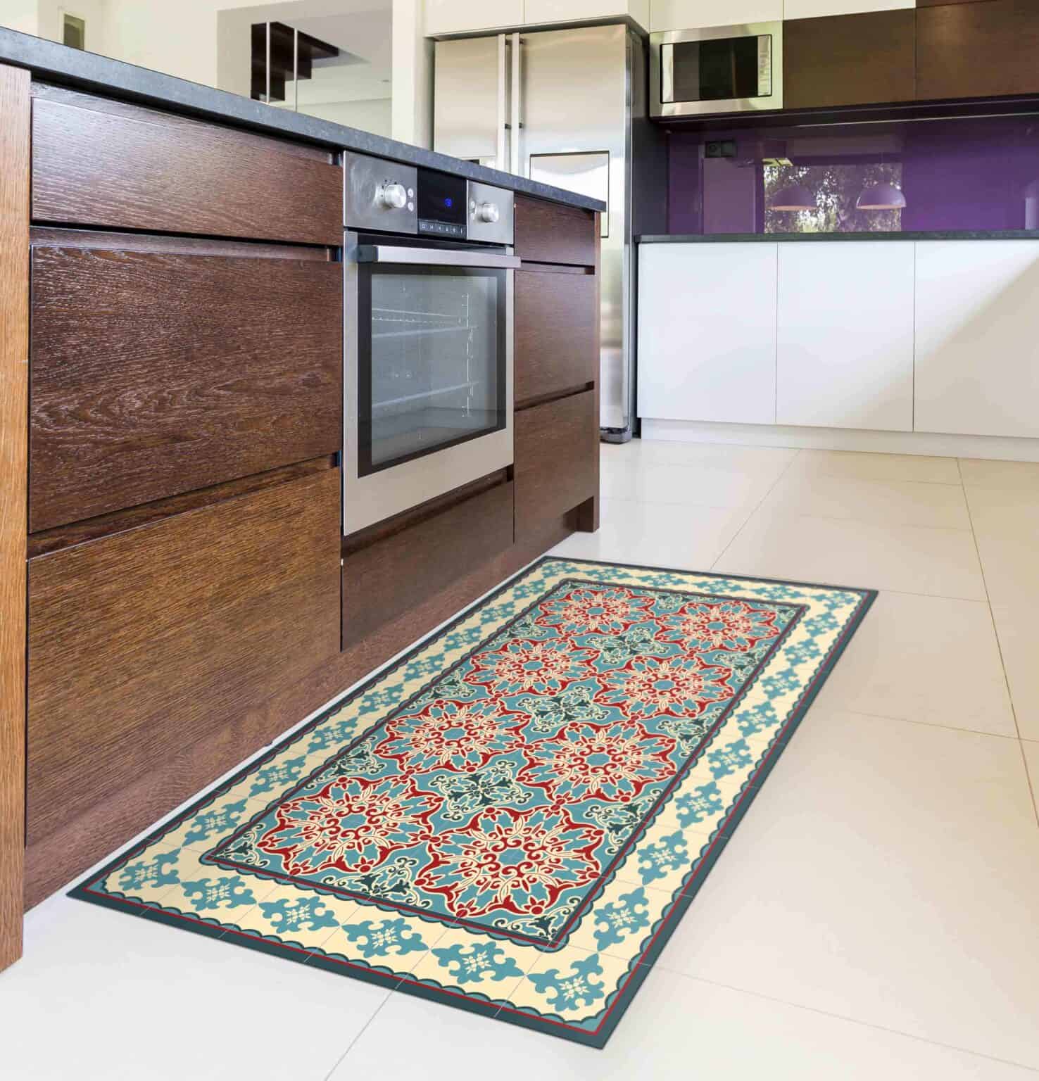 שטיח יפה, מוסיף צבע וגוון למטבח, קל לניקוי ושימוש ופרקטי.