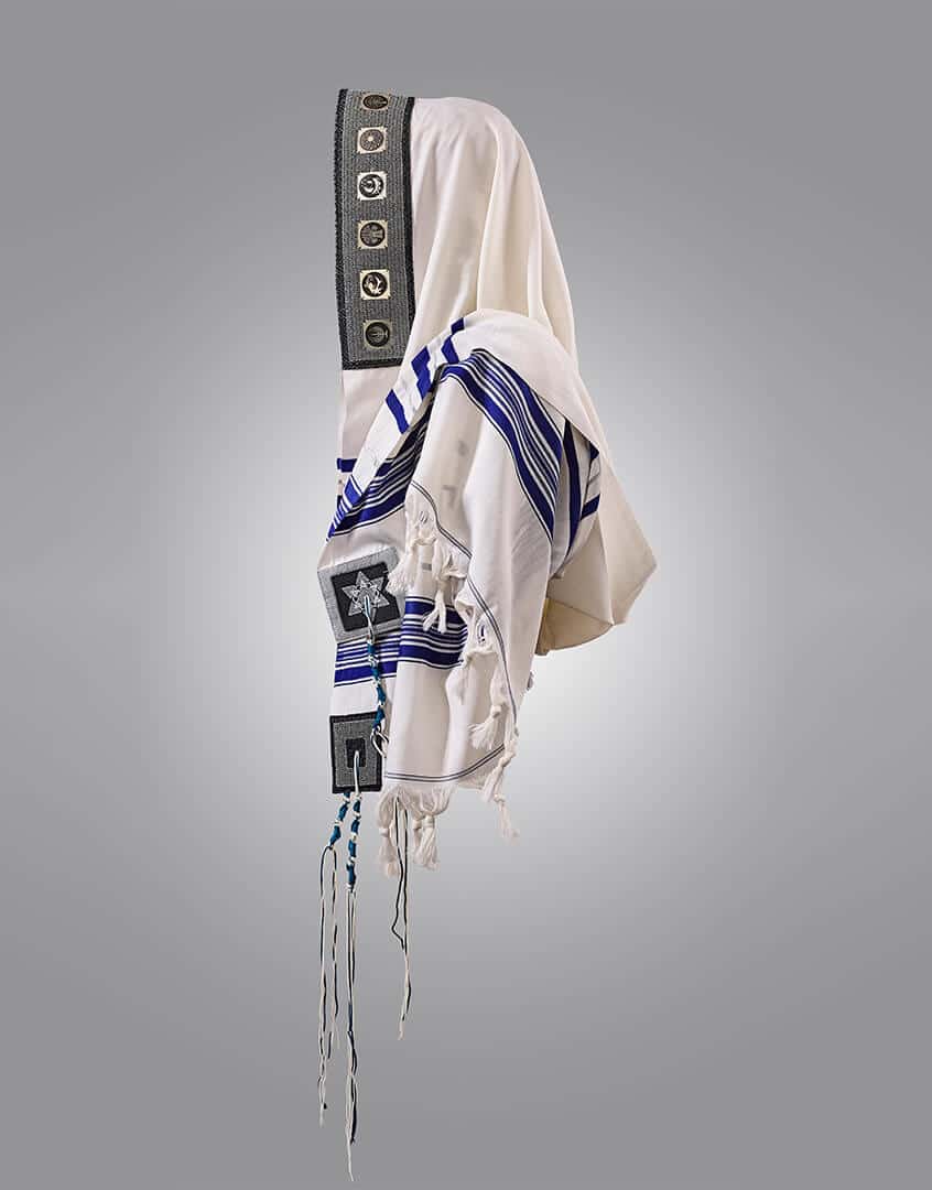 טלית צמר מהודרת ומקורית, מעוצבת בקפידה לשדר יוקרה וקדושה לכל מתפלל. בעטרה, רקמת חוטי כסף מפוארת וביניהם שזורה רקמת 12 השבטים בציפוי זהב, המעניקה מראה מרהיב וייחודי. ארבע הפינות של הטלית מעוטרות ברקמה דו צדדית מרהיבה ושזורות חוטי ציצית עם פתיל תכלת ייחודי. השילוב המרהיב של כסף ושחור מוסיף נופך של אלגנטיות ויוקרה, יוצר חוויית תפילה מרוממת. הזמינו עכשיו את הטלית הצמר המהודרת והעניקו לעצמכם או לאהובים עליכם תכשיט רוחני מהודר ויוקרתי.